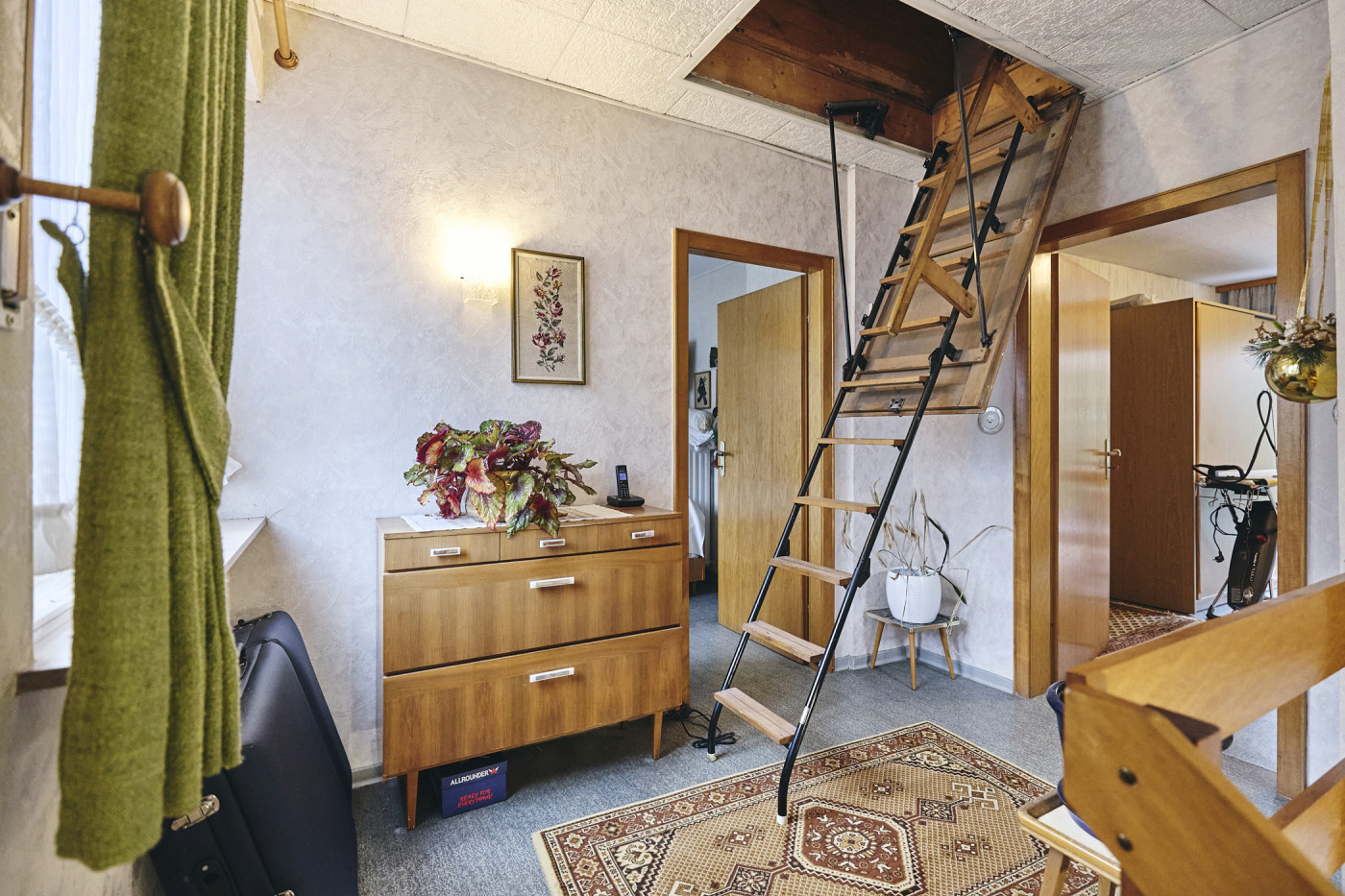 Der Spitzboden ist gedämmt, hier befindet sich eine weitere gute Möglichkeit für Hobby und Stauraum.