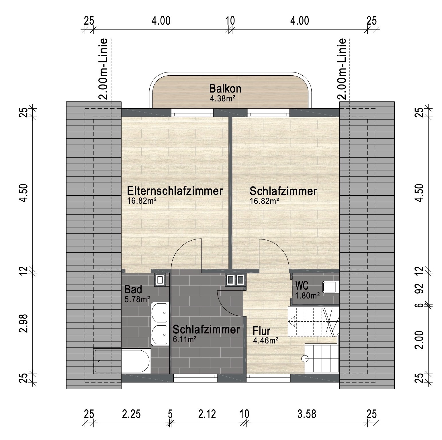 Im 1. OG befinden sich drei Schlafzimmer, ein Bad und ein WC, durch leichte Grundrissanpassungen kann dieser Bereich wunderbar zum Familienparadies umgestaltet werden. Über die zum Garten ausgerichteten Schlafzimmer betritt man den Balkon.