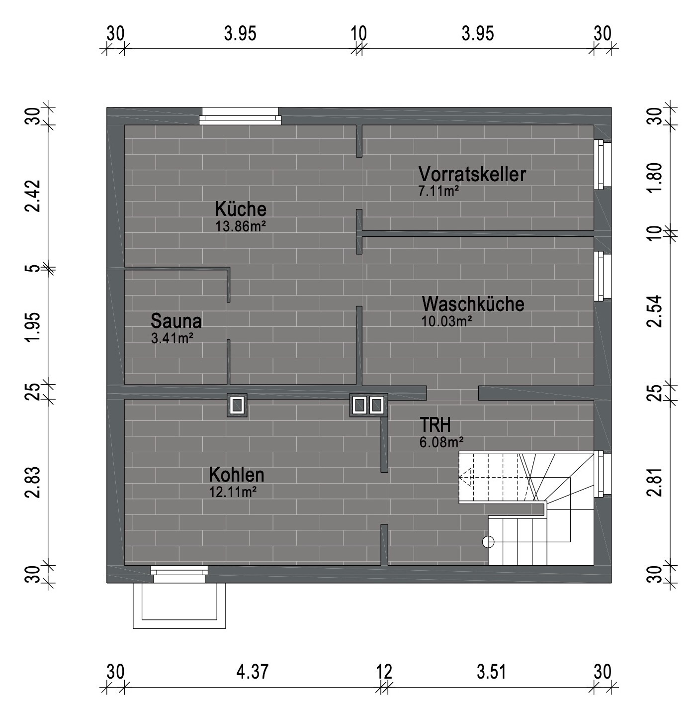 Weiteren Stauraum bietet der Keller mit einem direkten Zugang zum Garten, neben der Waschküche, der Sauna und der Heizungsanlage befinden sich auf dieser Ebene großzügige Kellerräume.